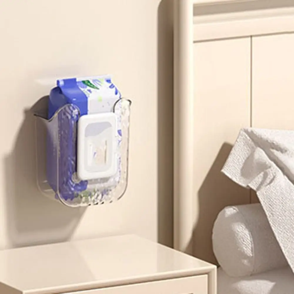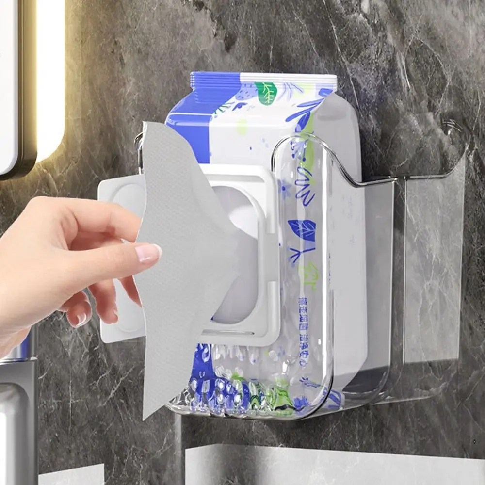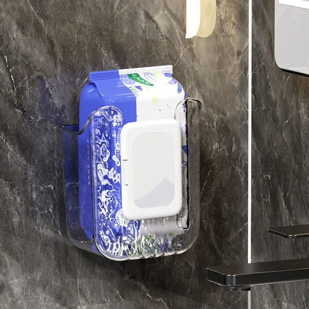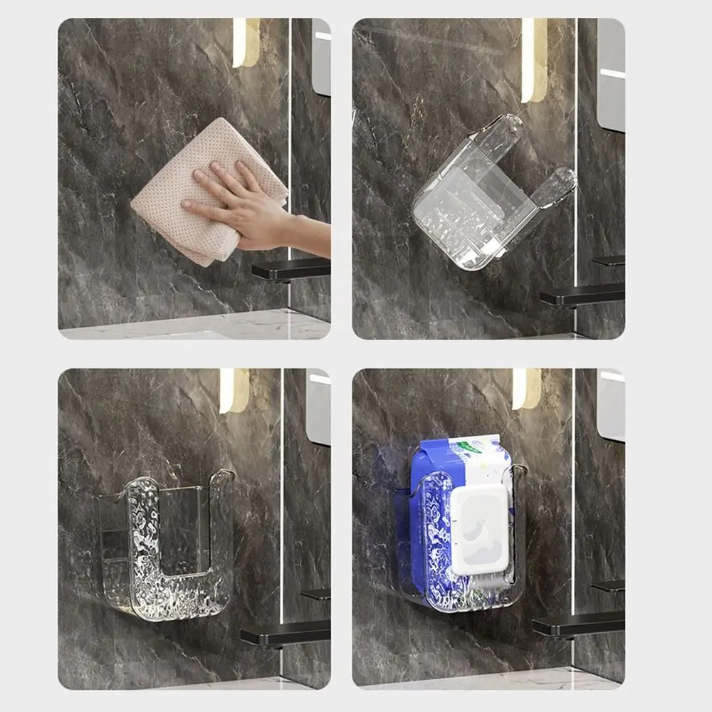 Plastic Wall Mounted Tissue Box Self-Adhesive Punch Free Paper Towel Holder Upside down Space-Saving Napkin Container Bathroom